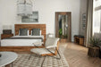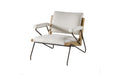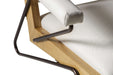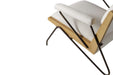 Taking cues from classic, clean-lined Scandinavian designs, this contemporary lounge chair features a striking frame crafted from exposed oak contrasted with black powder coated steel. The seat, backrest, and armrests are reclined to create a relaxed, low profile statement chair.