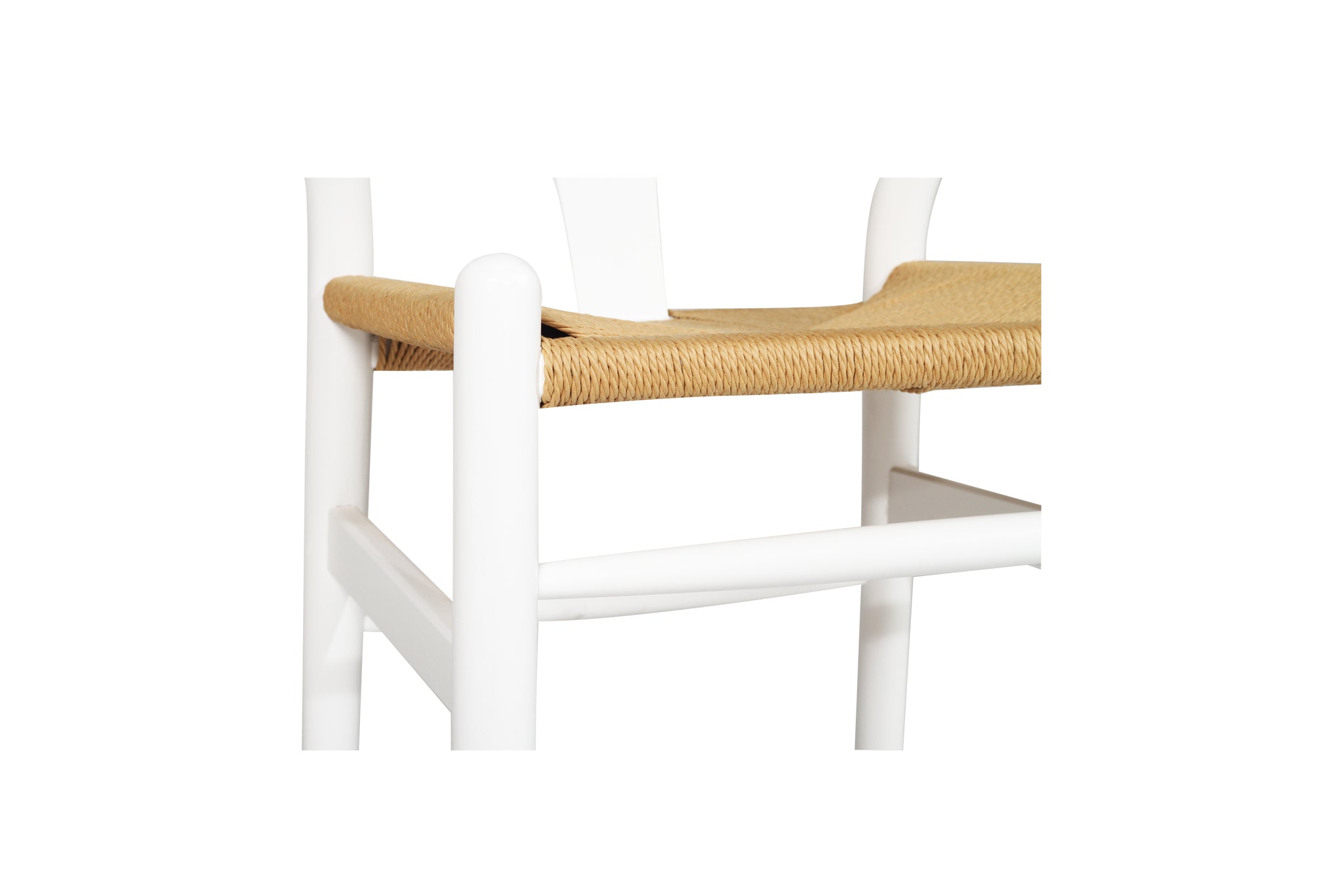 The Hans Wegner Wishbone Replica Counter Stool is a replica of the original Hans J Wegner CH24 Wishbone chair designed in 1950. The iconic design was inspired by portraits of Danish merchants sitting in Chinese Ming Dynasty chairs. It combines top rails and arms into a single piece with a characteristic Y-shaped back which provides comfortable support while giving stability to the steam-bent top. A natural paper cord base provides additional comfort and style whilst the tapered legs are an additional stylish feature of the stool.