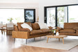 The Marvin Three Seater Leather Sofa is a masterful blend of mid-century form and comfort. Hand tufted back and sides complement the South American top grain waxed leather in vintage brown. The Marly Sofa allows for a relaxing afternoon nap or overnight stay without having to curl up.