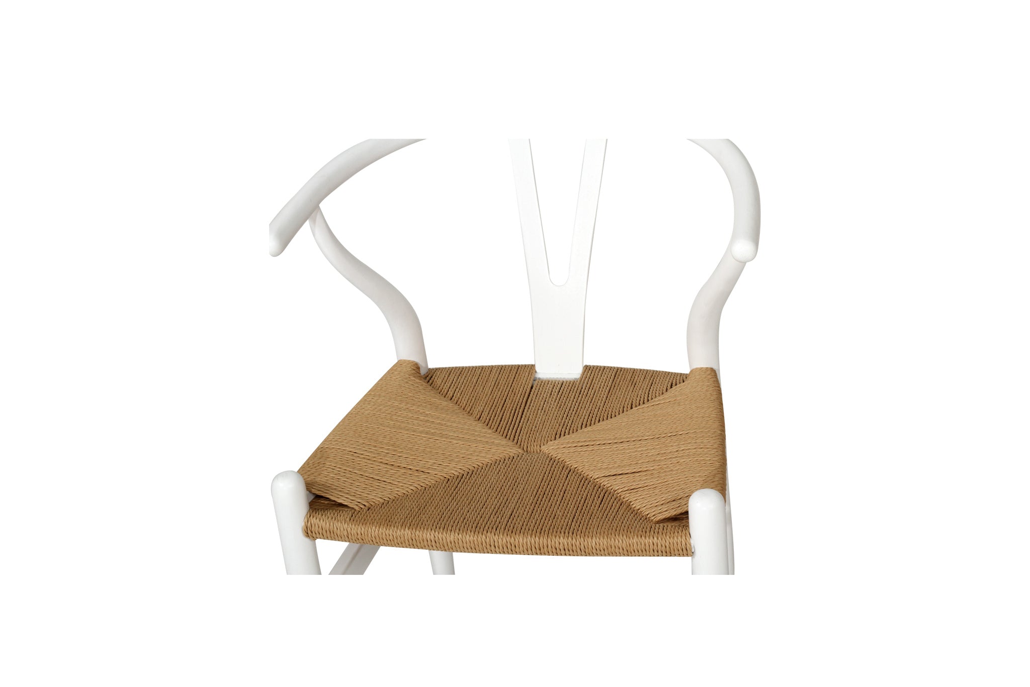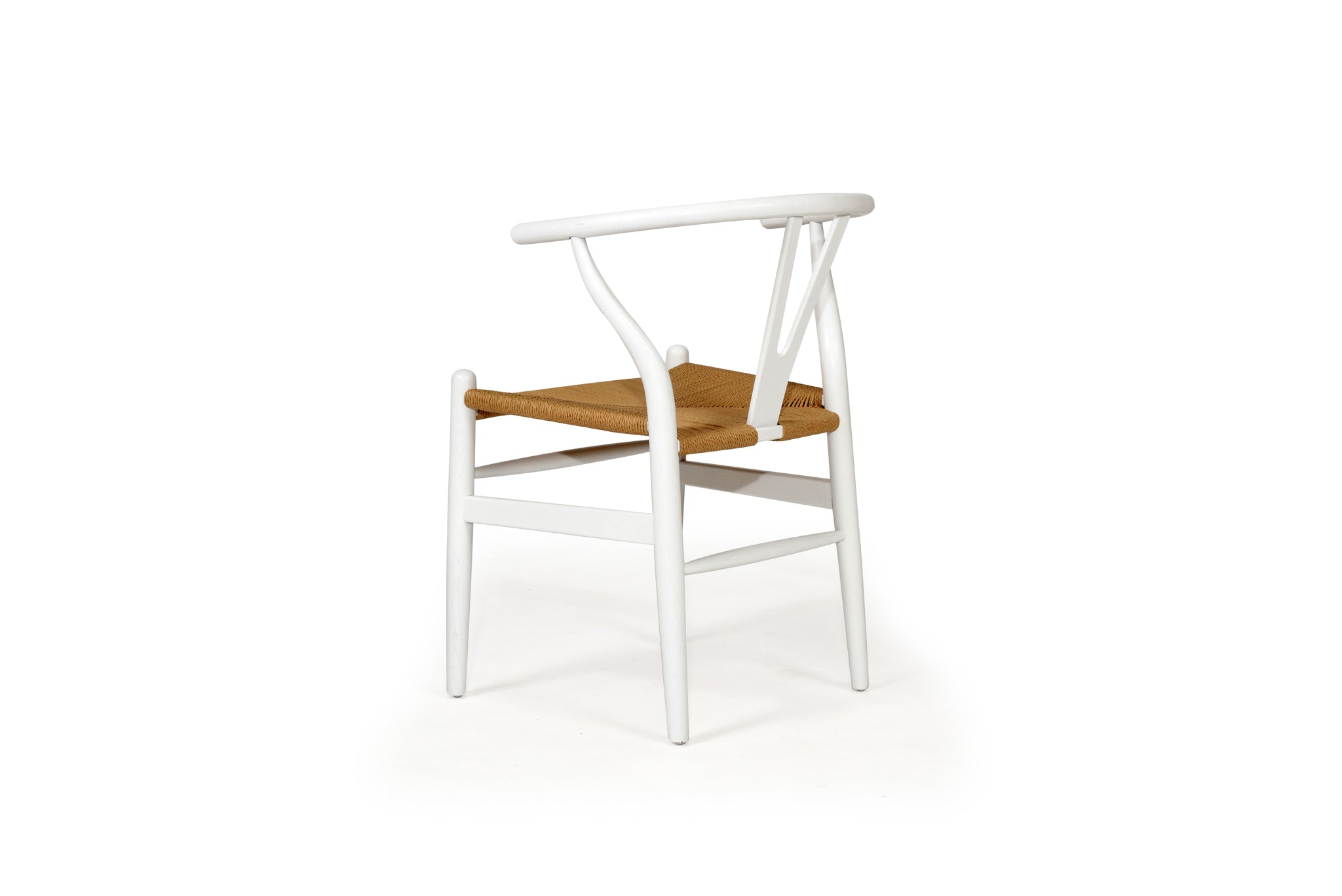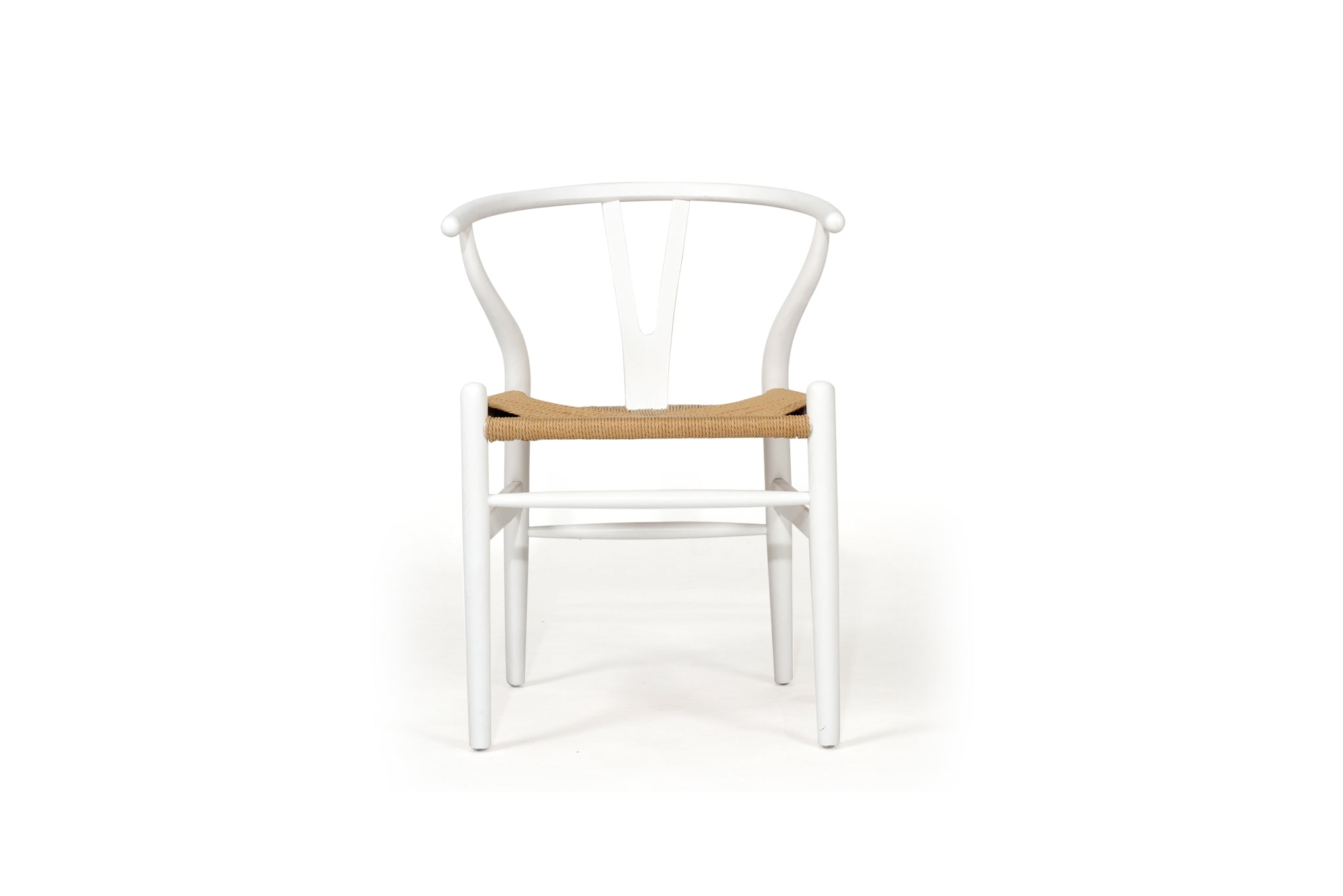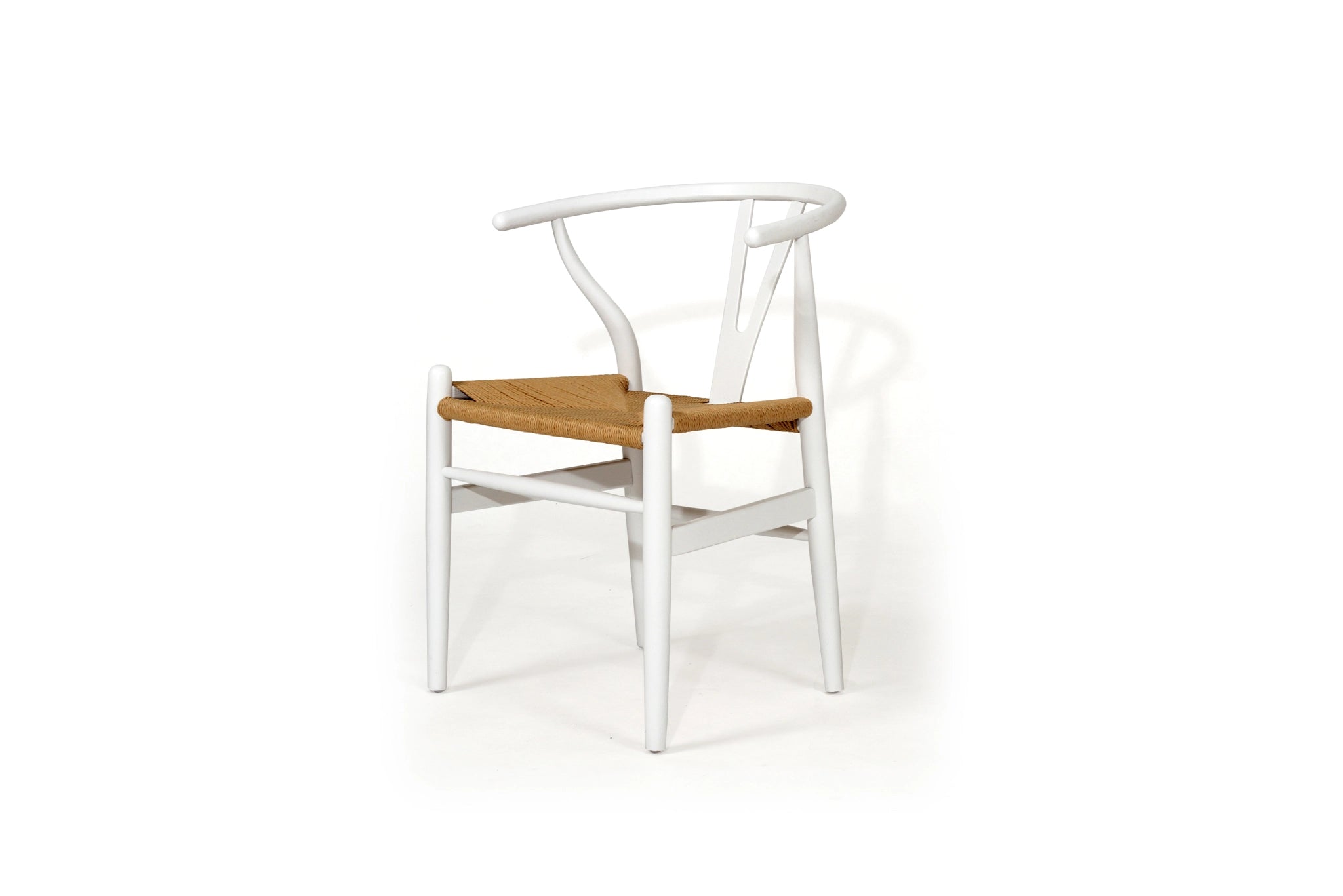 The Hans Wegner Wishbone Replica Dining Chair is a replica of the original Hans J Wegner CH24 Wishbone chair designed in 1950. The iconic design was inspired by portraits of Danish merchants sitting in Chinese Ming Dynasty chairs. It combines top rails and arms into a single piece with a characteristic Y-shaped back which provides comfortable support while giving stability to the steam-bent top. A natural paper cord base provides additional comfort and style whilst the tapered legs are an additional asset of the chair.