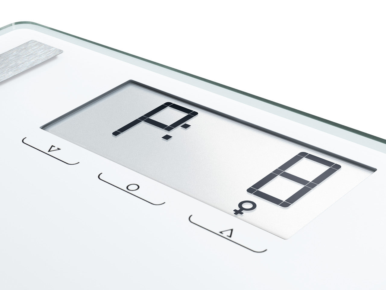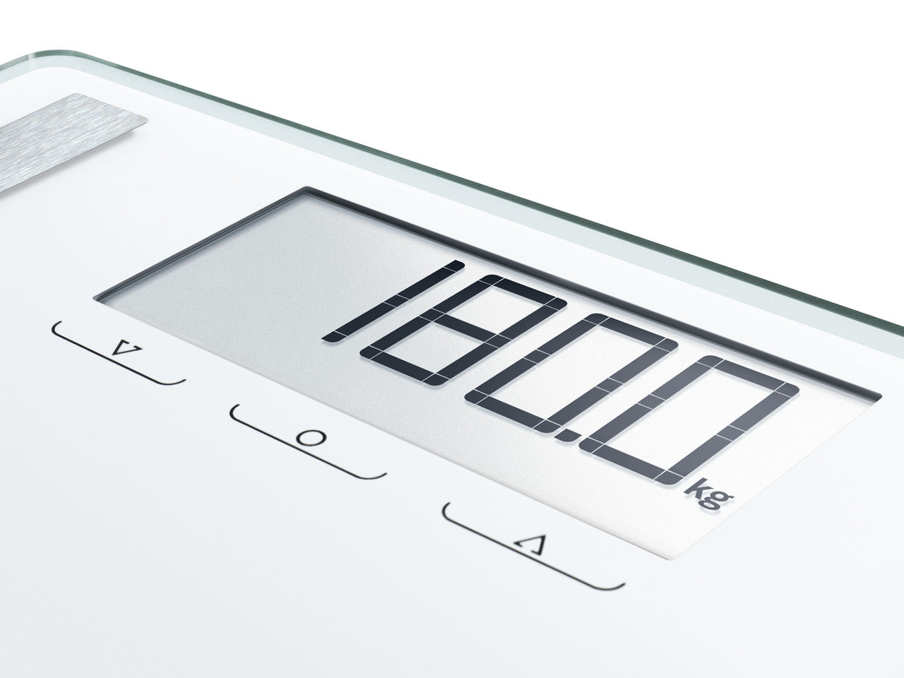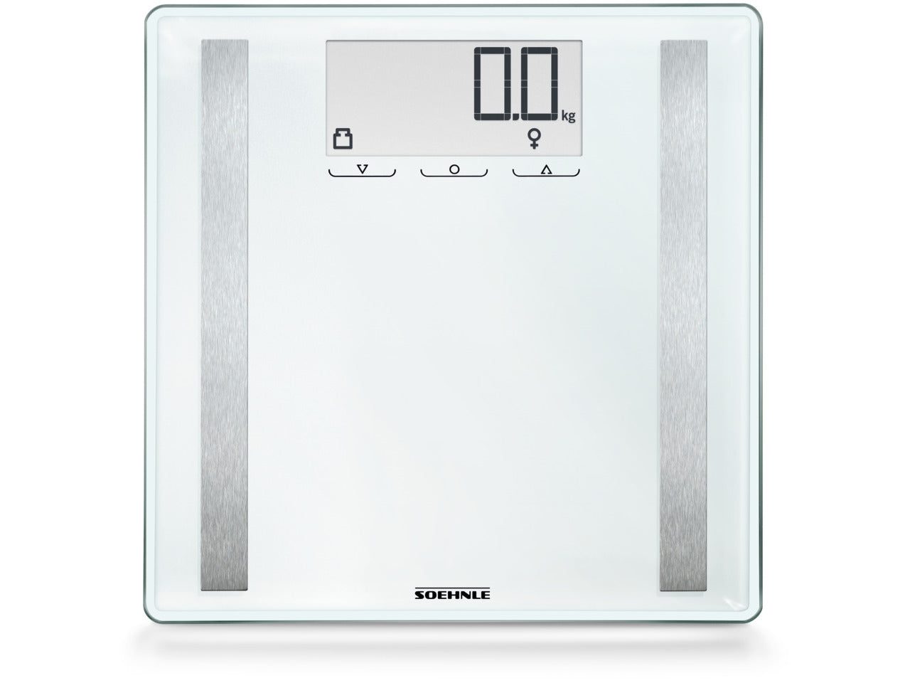 A fitness partner that you can count on! The digital body analysis scale Shape Sense Control 200 is the ideal help for all those wanting to get fit and stay fit. Its elegant platform all in white and the extra-thin Soehnle design turn this body analysis scale into a special highlight in your bathroom. In addition to the body fat and body water content, it calculates muscle mass as well as the daily calorie requirement. It provides reliable monitoring of training and success can be measured. The scale automatically recognises up to eight persons so that even the whole family can participate. Its large platform is made of high-quality safety glass and all values and weight can be read very comfortably on the large LCD screen. The scale also features a high load capacity of up to 180 kg / 396 lb in body weight, displayed with a precise graduation in 100 g / 0.2 lb increments. It has a convenient and automatic on and off function, switching on immediately when stepping on the scale and turning off after weighing. Battery life is prolonged and saves energy. Highly child-proof with a secure screw-fastened battery compartment. Batteries included.