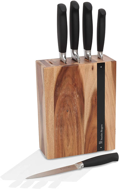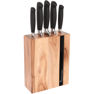 The acacia wood top combined with a matte black body looks great on any kitchen bench top. The block houses the five essential knives to cover all ...