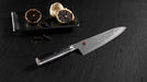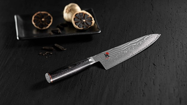 • Miyabi 5000FCD blades are formed by 49 layers of steel with a Rockwell hardness of approximately 61.