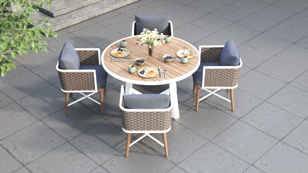 Fraser Outdoor Round Dining Table – 1.25m – White Pearl Powder Coated Legs
