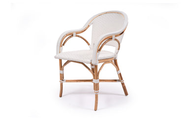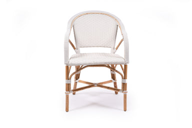 Description: Inspired by the classic 1930s European bistro chair, the Williamstown armchair has been re-imagined in a versatile rattan and syntheti...