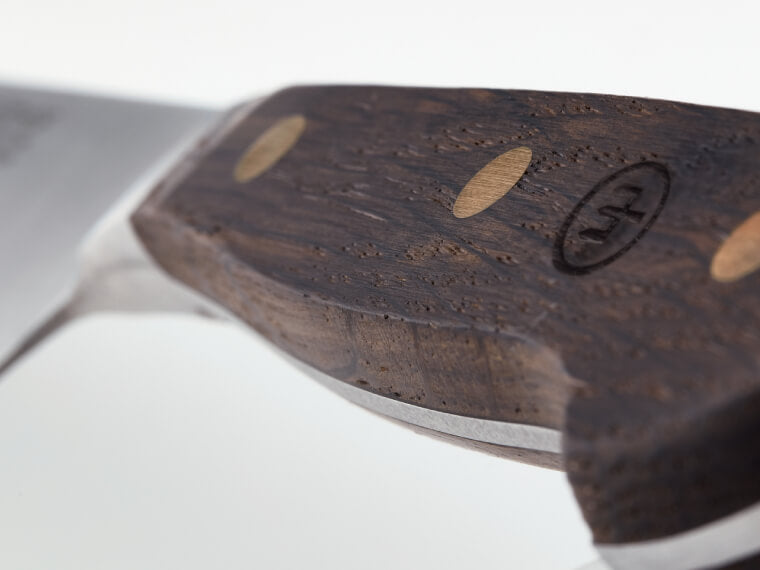 - Fully forged from a single piece of stainless steel (X50 Cr MoV 15). Hardened to 58° HRC