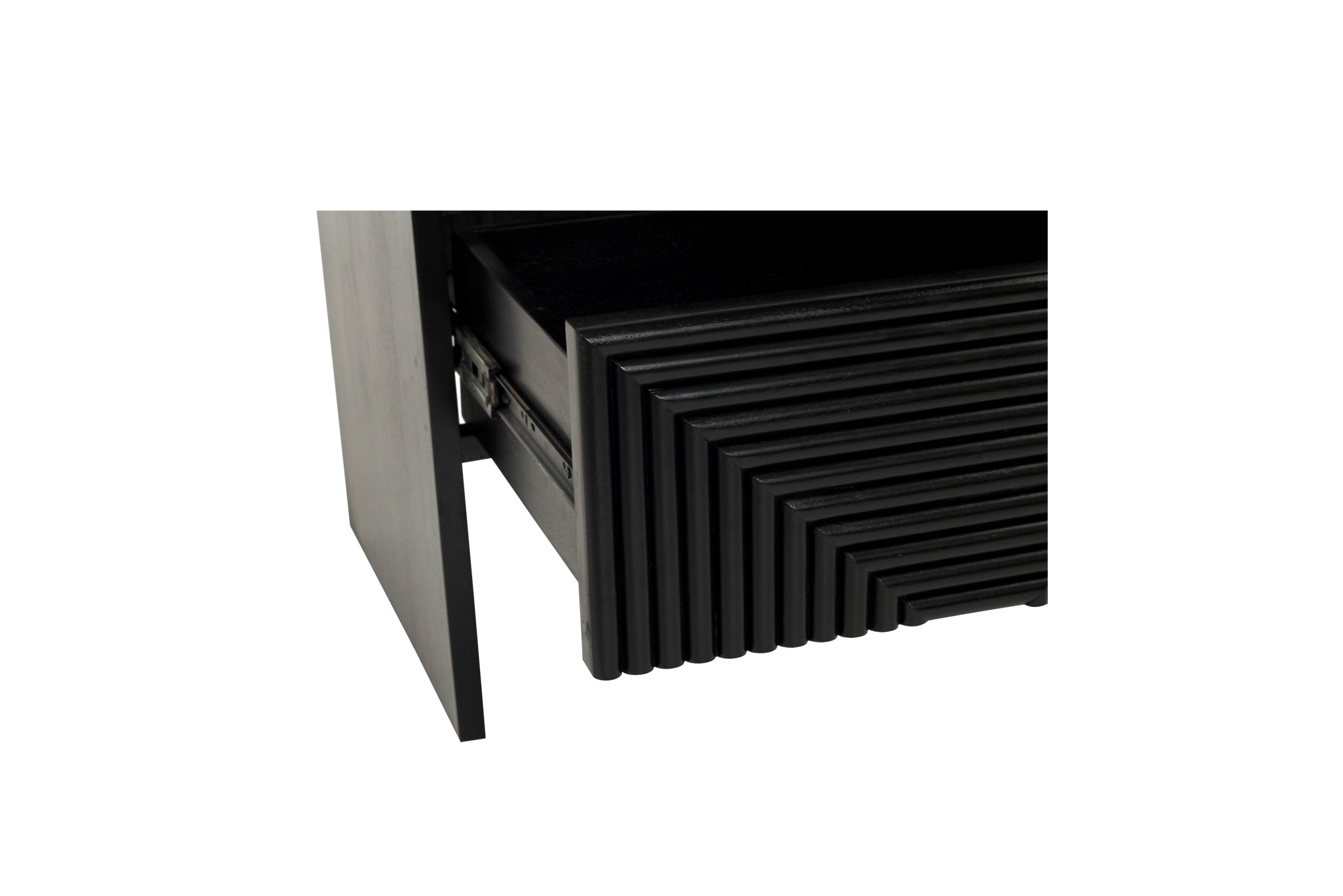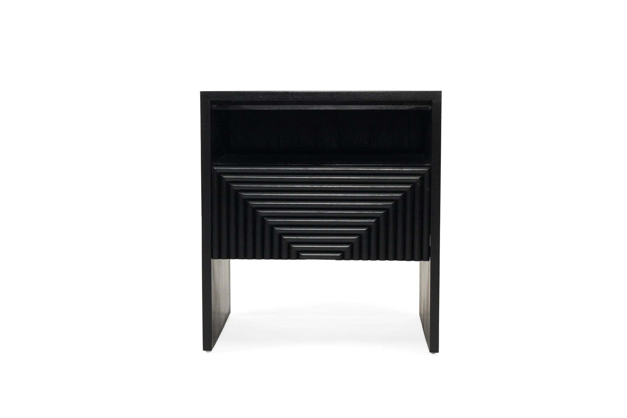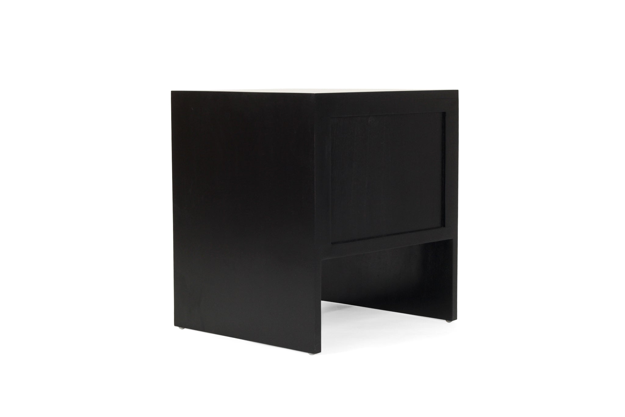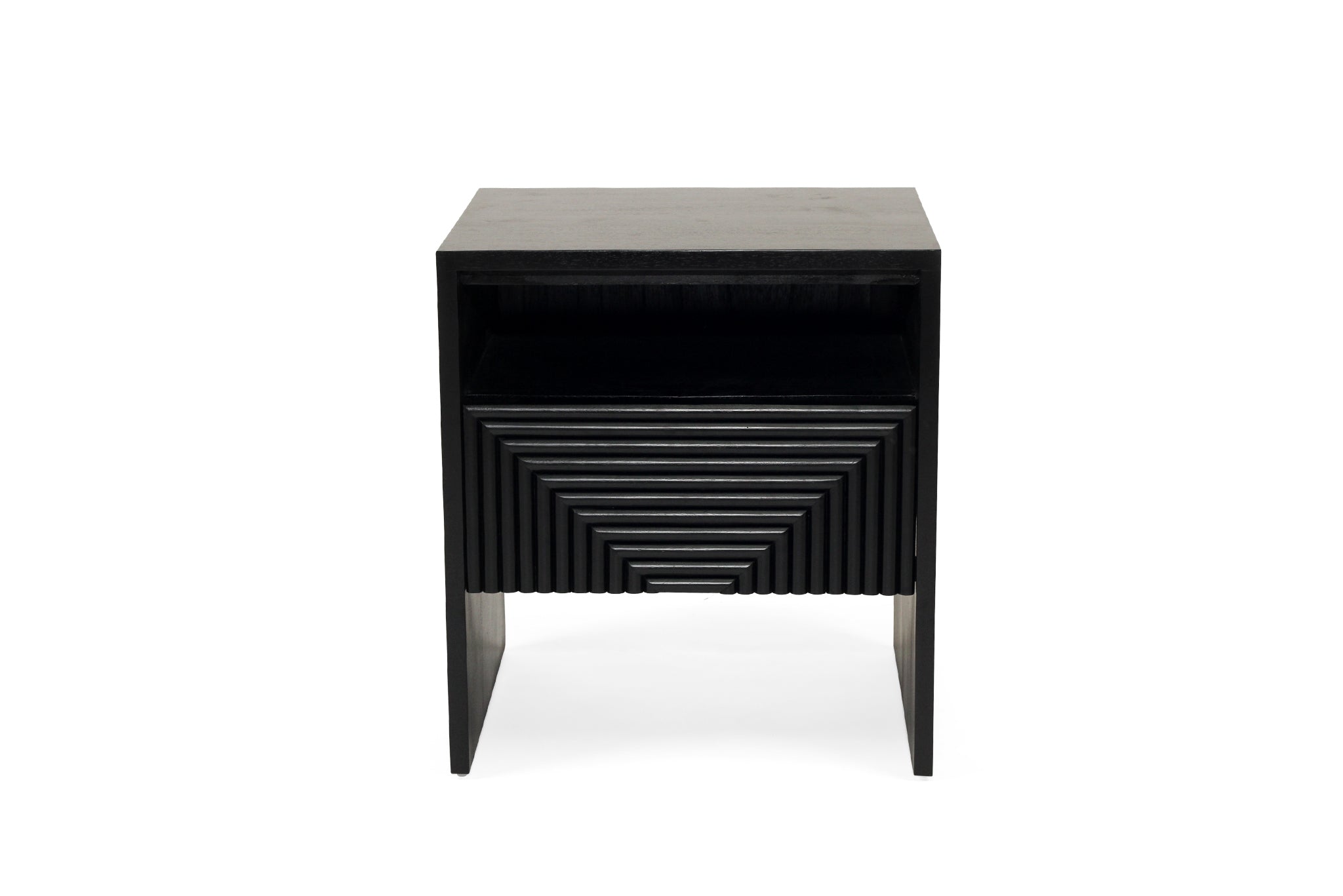 The Cessnock Bedside Table is constructed from Acacia Wood and is finished in black. It has 1 opening drawer..