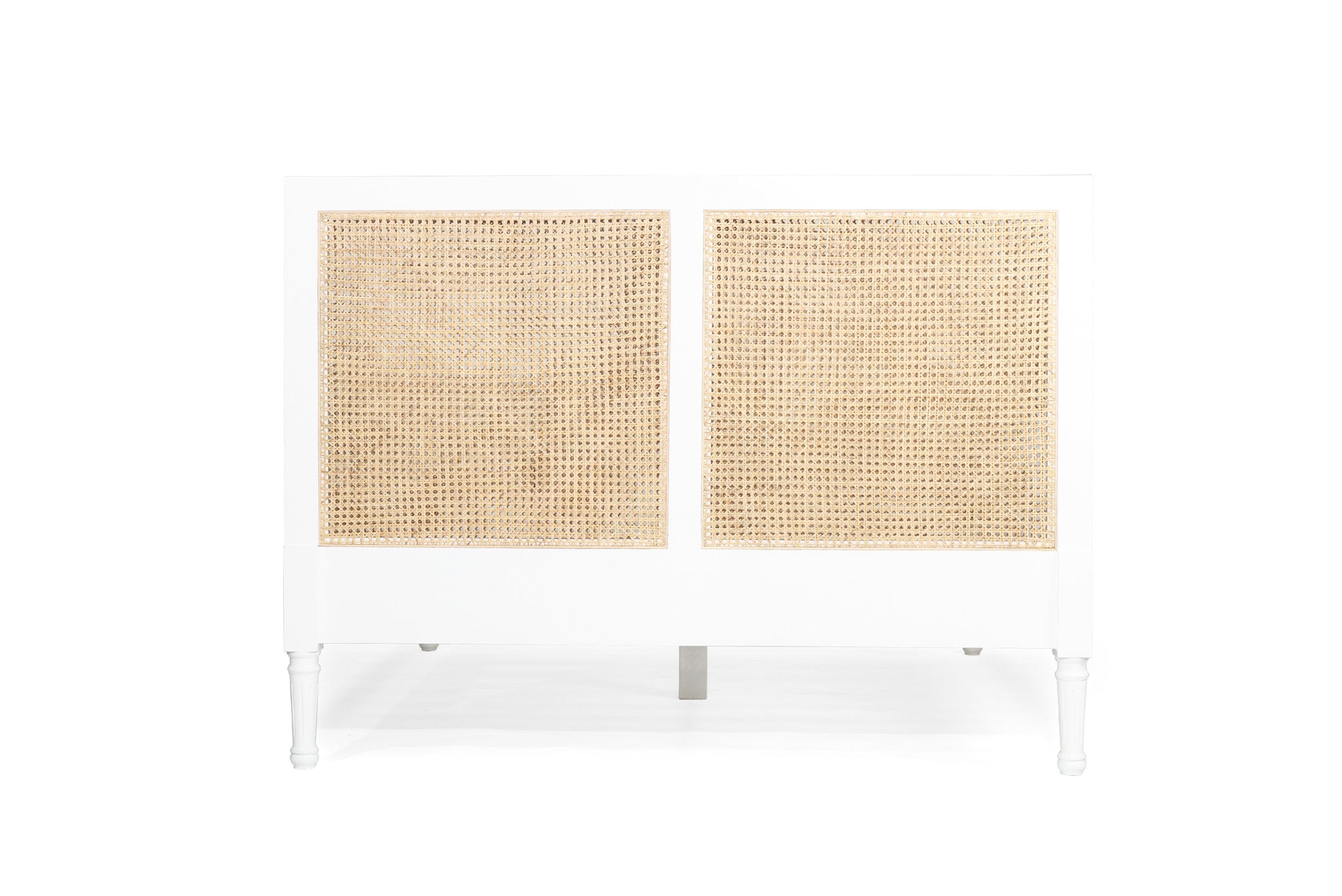 The Vaucluse Cane bed is a refreshing summer remake of a traditional Louis XIV bed. Our white finish is crafted of solid Mahogany wood, then combined with a natural open weave cane to create an elegant coastal feel which goes with almost anything.