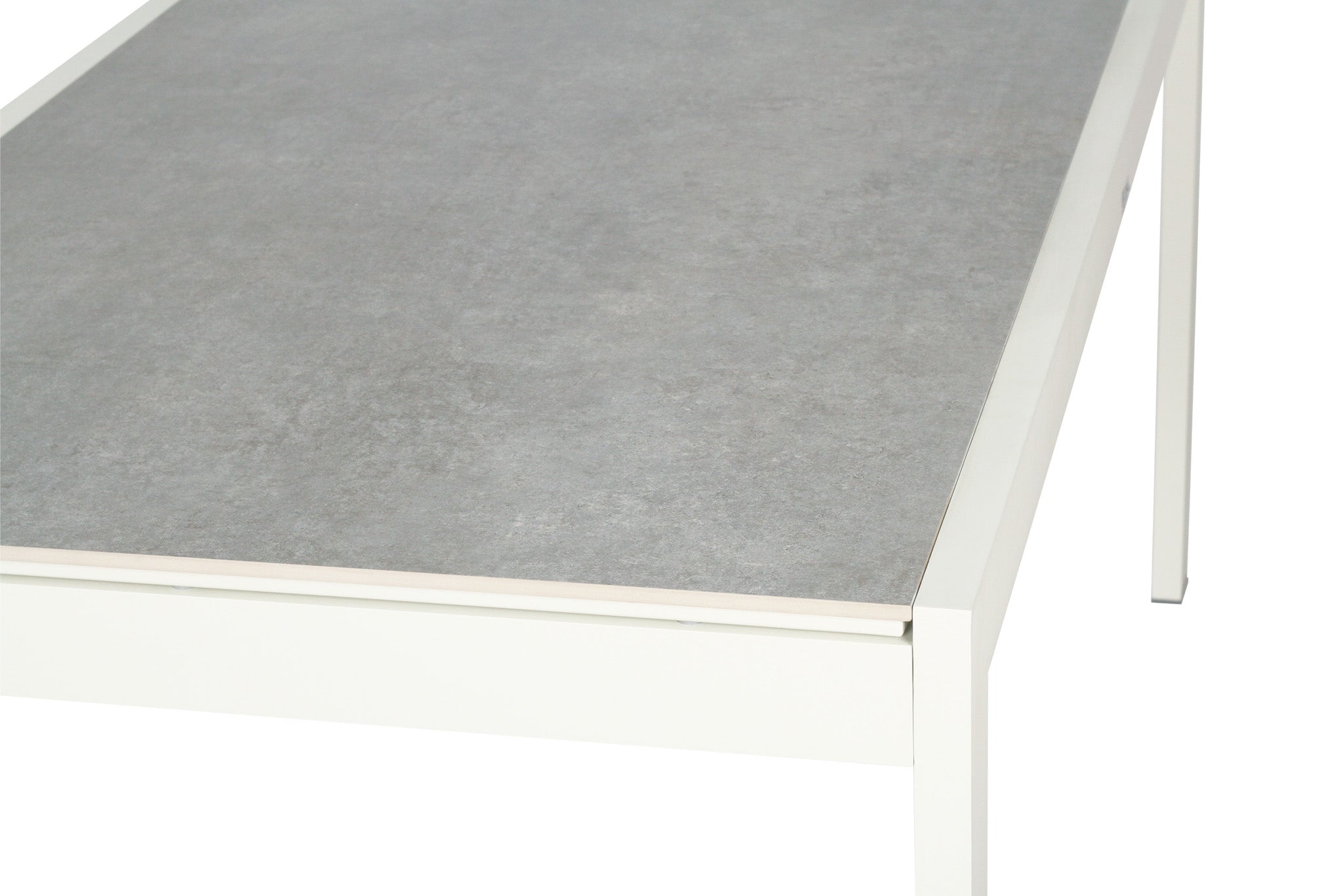 The Randy Outdoor Dining Table features a white powder-coated Aluminium frame legs with a classy ceramic table top. Perfect for indoors or outdoors use.