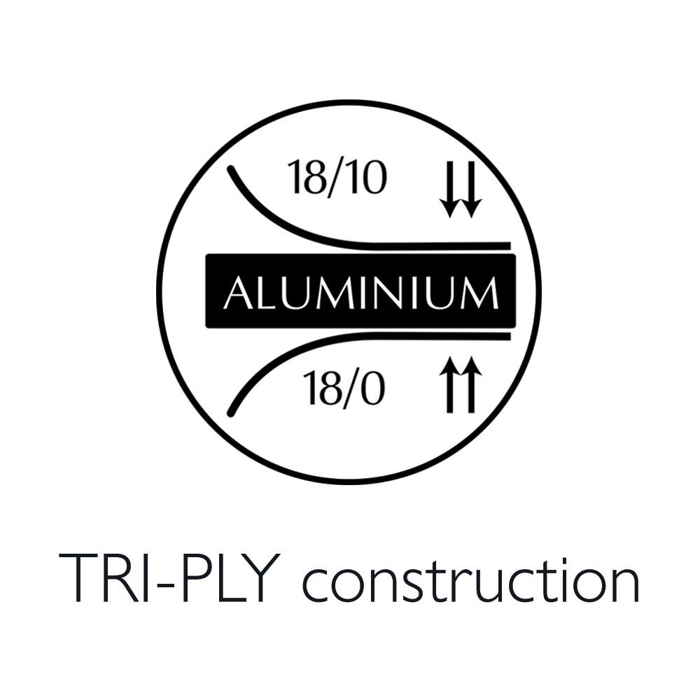 | Material | TRI-PLY (premium 18/10 stainless steel / aluminium / stainless steel) |