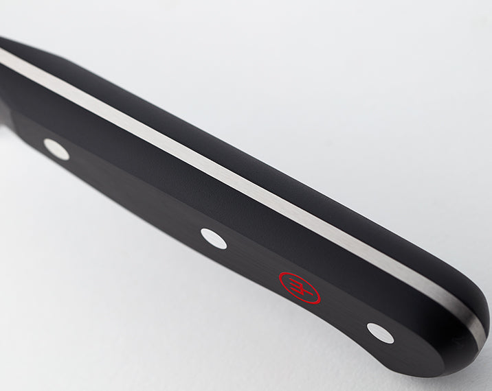 A classic amongst the range of knives that belong in every kitchen: as well as bread, this knife is suitable for use on hard-skinned vegetables and fruit, as well as for roasts, especially those with crackling. The concave (inwardly curved), serrated edge of the knife works like the teeth of a saw, but is much finer, so no pressure is required to cut any sort of bread and even a hard crust will allow a clean cut.