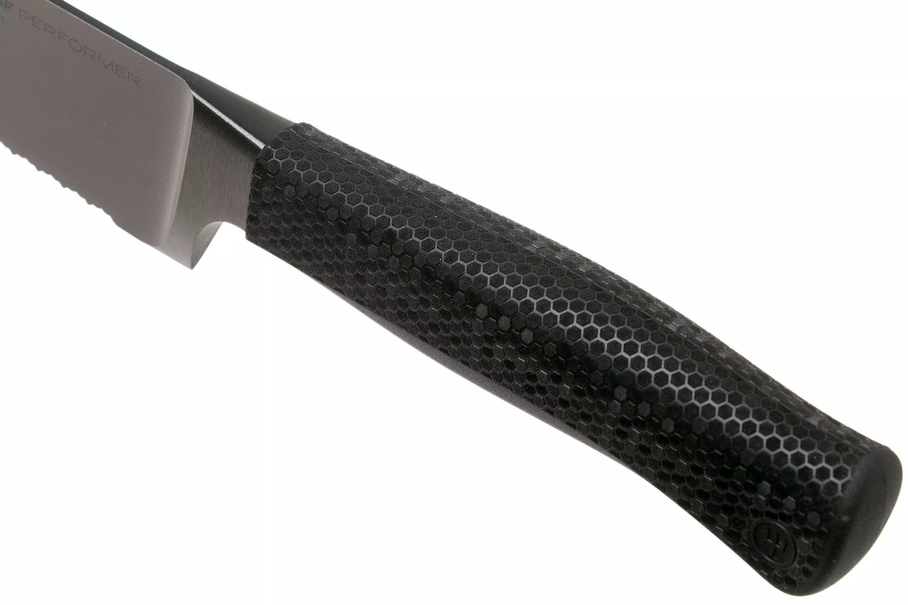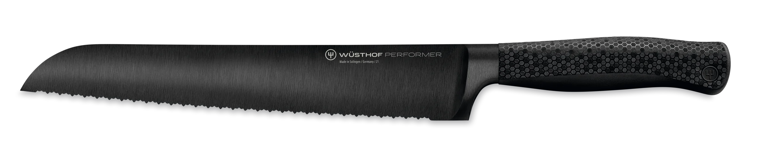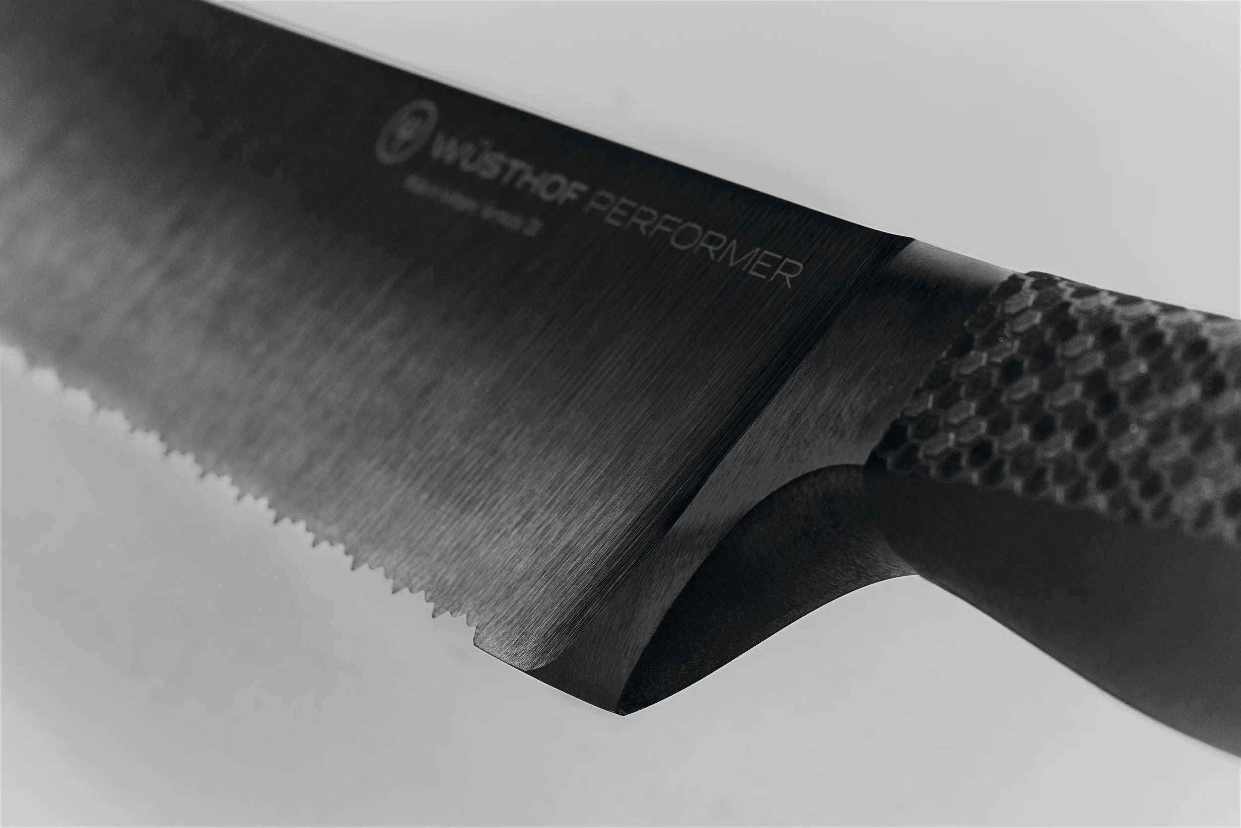 The Wusthof Performer bread knife is a bread knife for effortless ultimate performance. With the 23 cm long, serrated blade you can cut all types of bread: from hard to soft crusts, from buns to baguettes. But you can use the knife for more than just bread. It is also great for cakes and pies. And what about hard vegetables and fruit like melons, pumpkins and celeriac! A serrated knife is a lot more versatile than you might think.