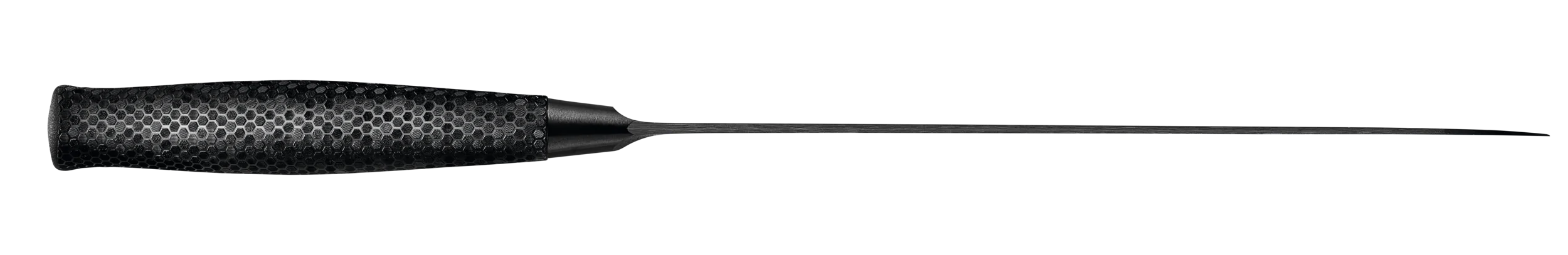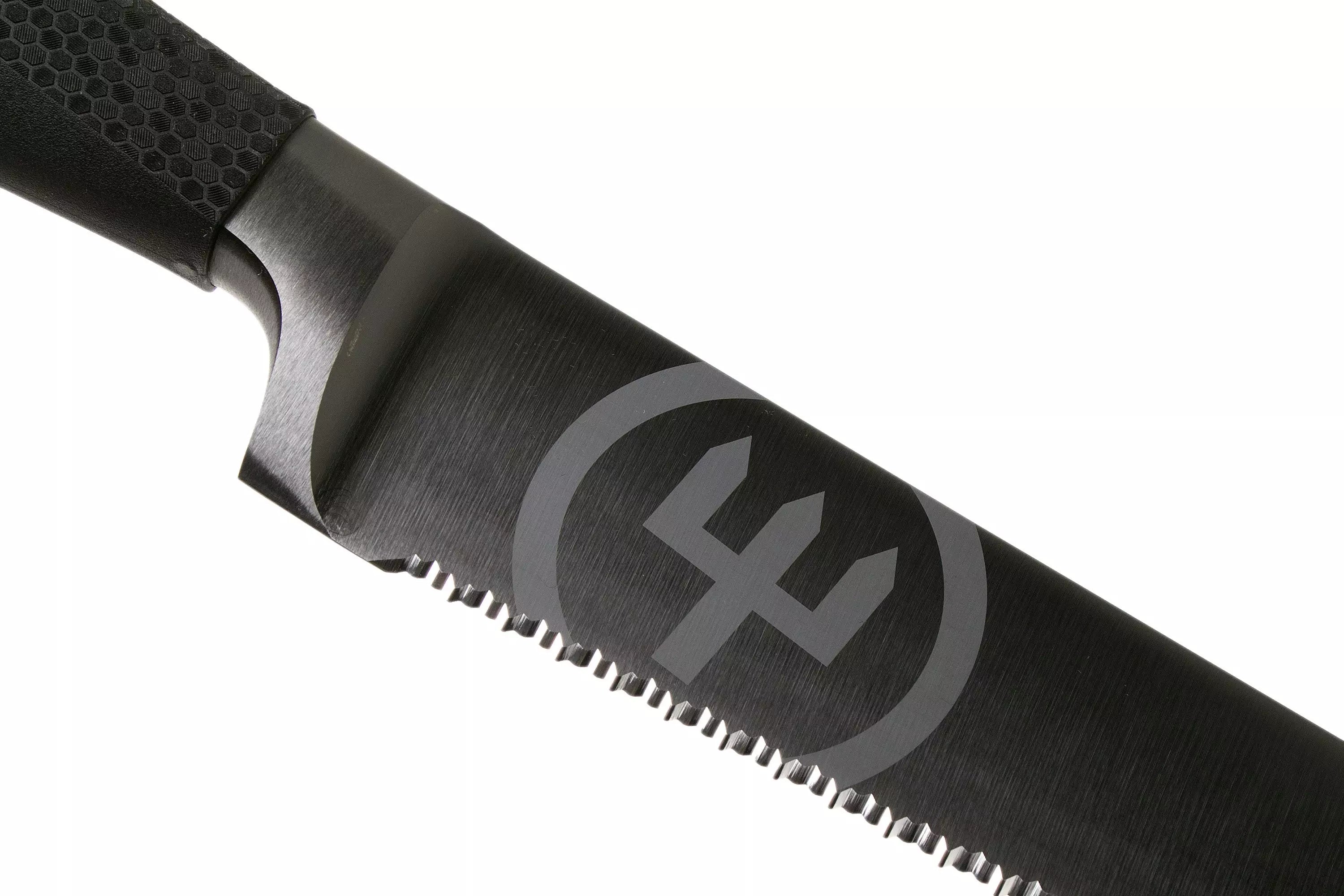 Like with other Wüsthof collections the blade is made from X50CrMoV15 steel, which was sharpened according to the PEtec method. These knives, however, are completely black, with a non-reflective black DLC coating on the blade. DLC-coating stands for Diamond-Like-Carbon-coating. A carbon structure that is used in the aviation industry. So extremely strong. The result is a blade that is well protected against scratches and acids. And, it is also amazing to look at!